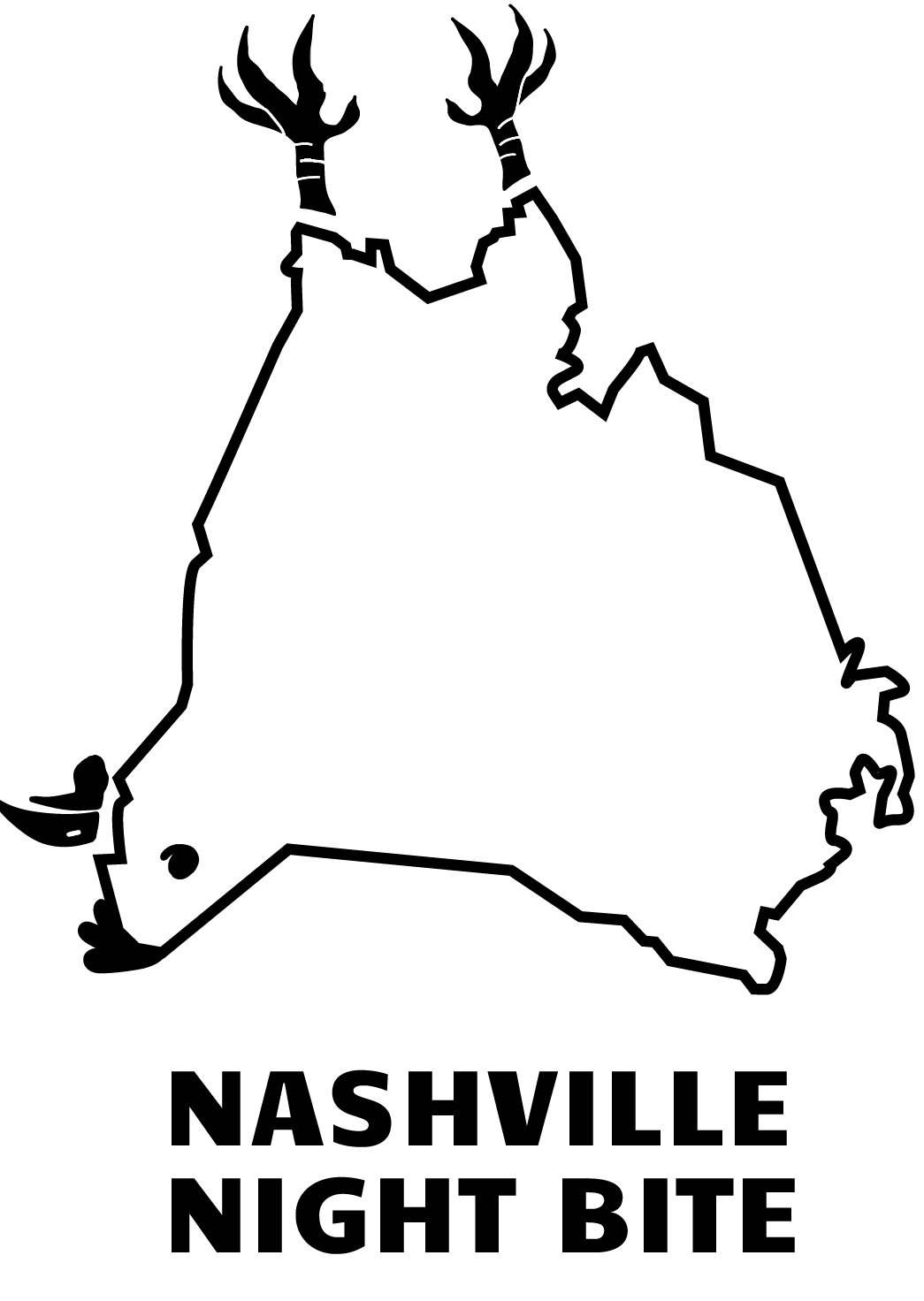 The core logo merges the outline of Nashville’s city map with the silhouette of a chicken, referencing both place and purpose in a single mark. The form is intentionally minimal and outline-based.